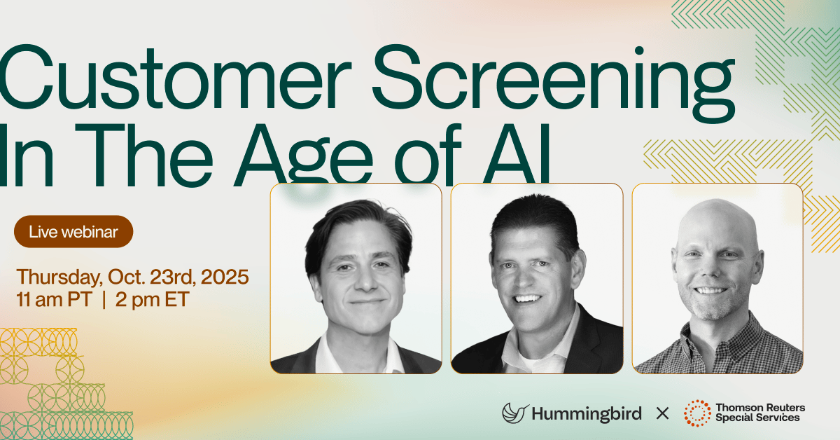 On October 23, leaders from Hummingbird, TRSS, and Kraken will share how AI + human intelligence can cut screening time in half, reduce false positives, and give your team more capacity for high-risk cases.